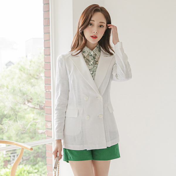 ピークト カラー リンネンコットン ダブルボタン ジャケット