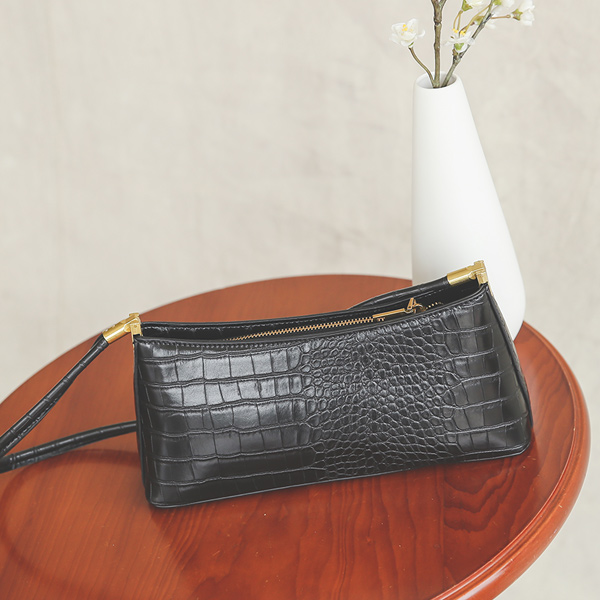 エンボスレザー パタン スクエア バゲット ハンドバッグ