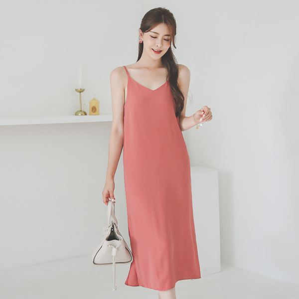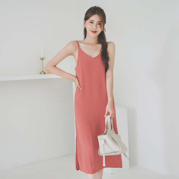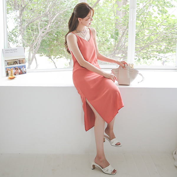 サイド スリット ブイネック ロング ビュスチエ ワンピース
