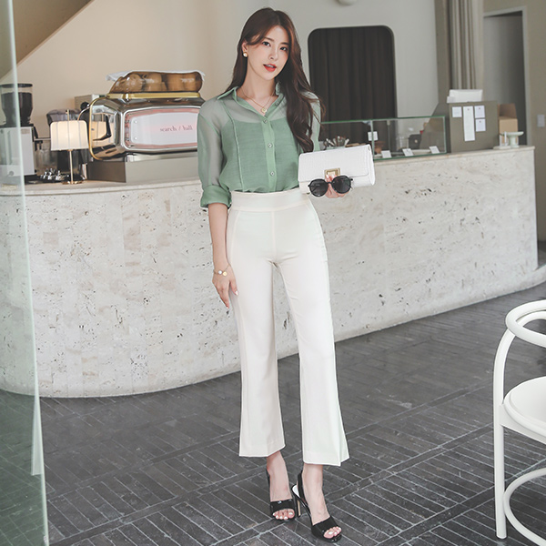 ワイド Stretchy-Waist ダブル 切開 スリット ブーツカット スレックス