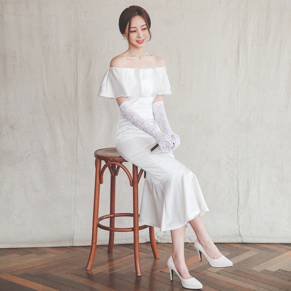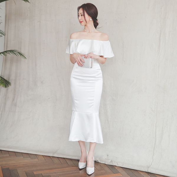 きらっと シルキー オフショルダー マーメイド ワンピース