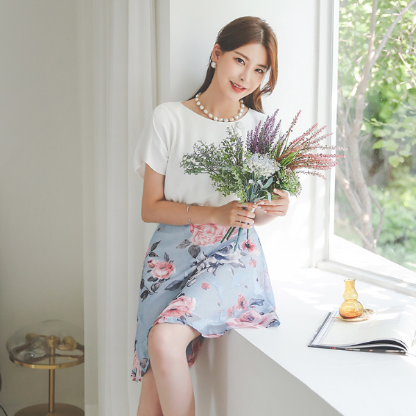 プリンセス ローズ 配色 ラッフル フレア ワンピース