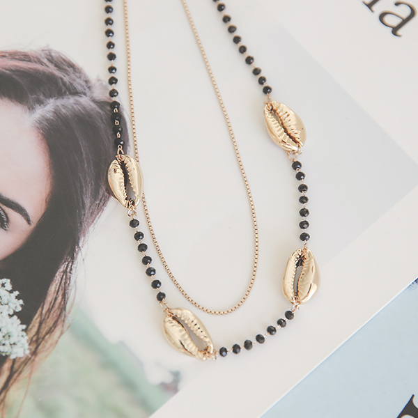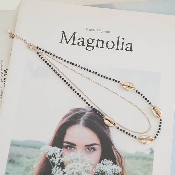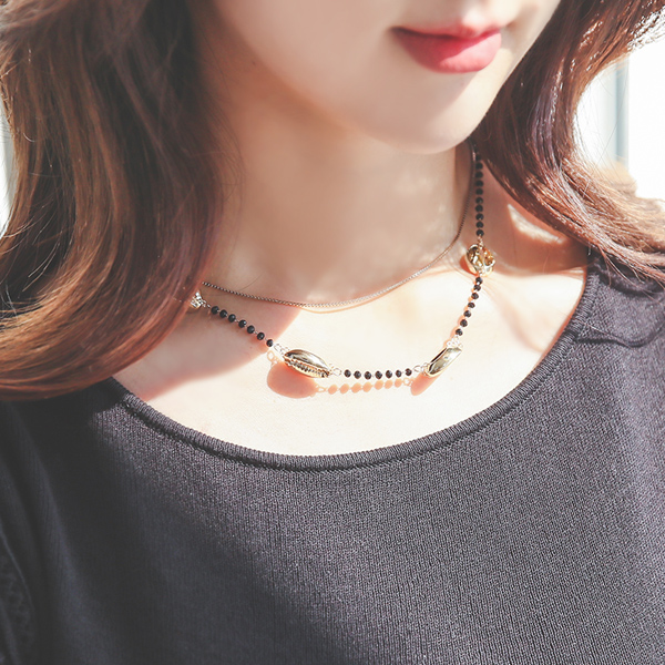 Gold コーヒービーン ブラックビーズ レイヤード ネックレス
