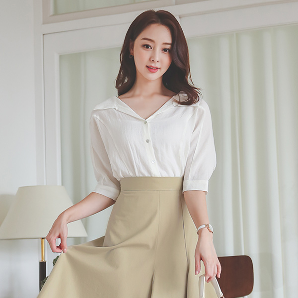 ワイド シャツ カラー ドルマンスリーブ リンクル ブラウス