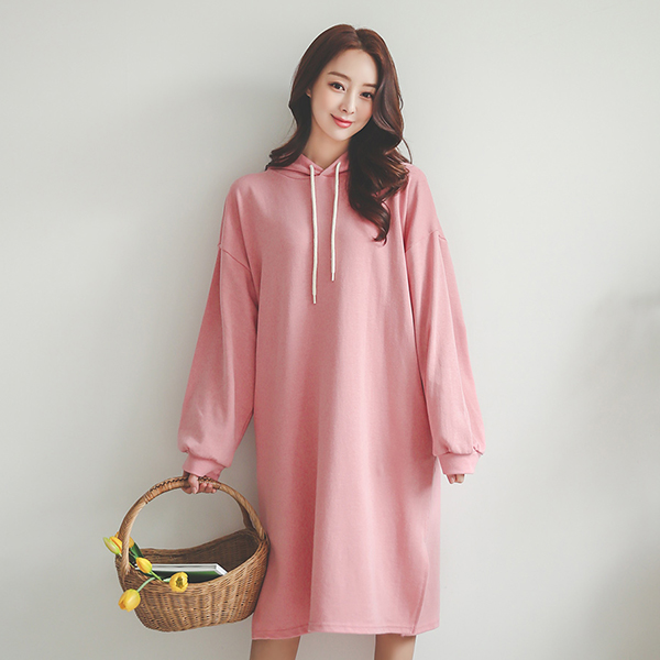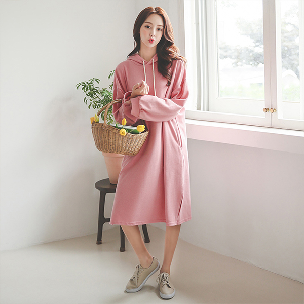 パステル フード サイド スリット ロング ワンピース