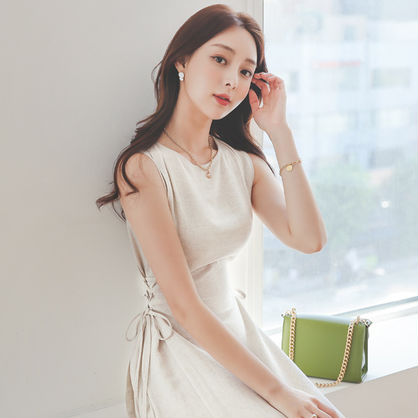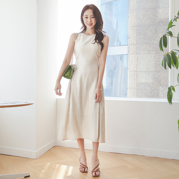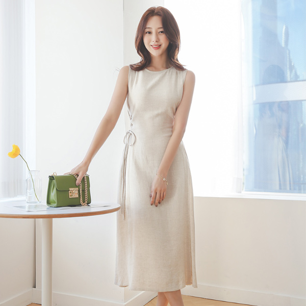 ロマンチック アイレット リネン ロング ワンピース
