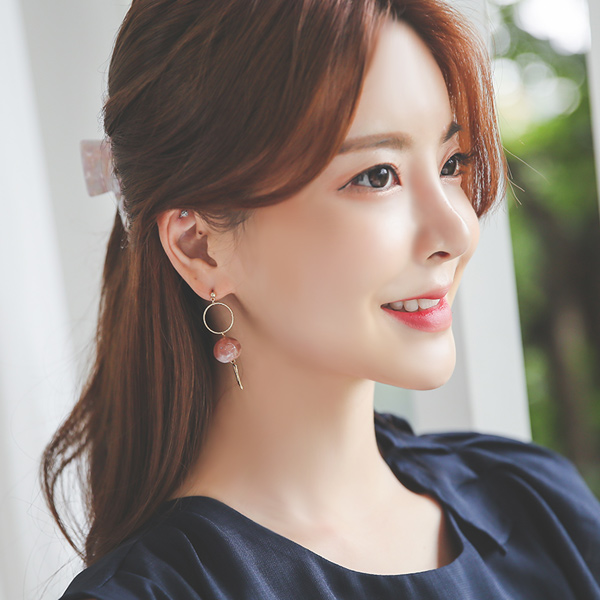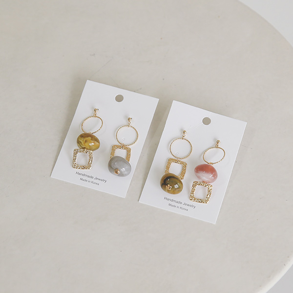 アンバランス マーブル ドロップ イヤリング