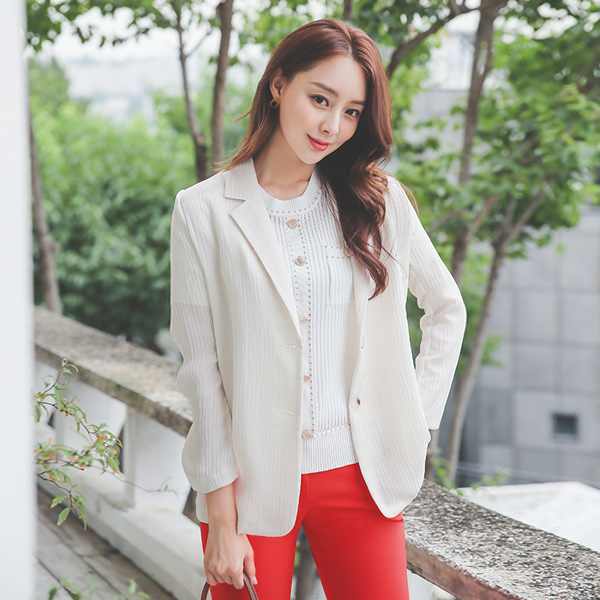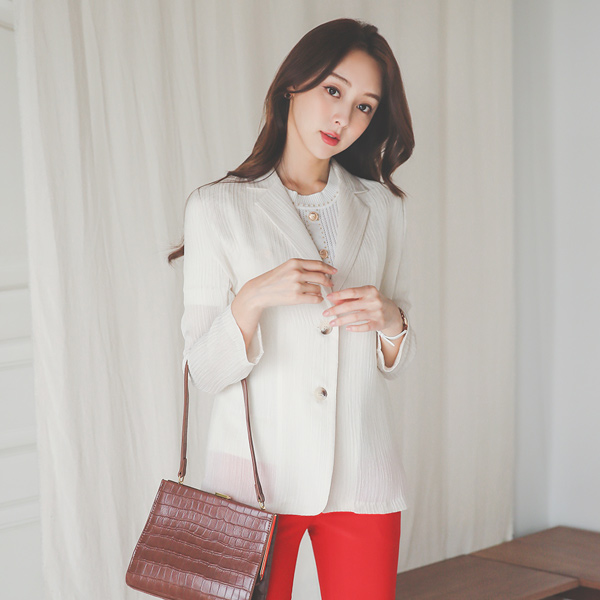 ストライプ シルキー シフォン ジャケット