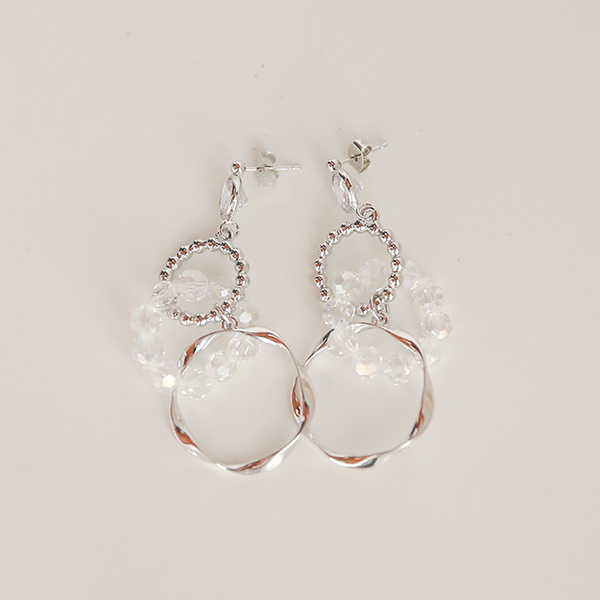 ビーズ サークル ツイスト Silver イヤリング