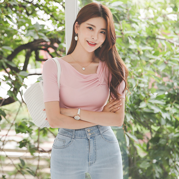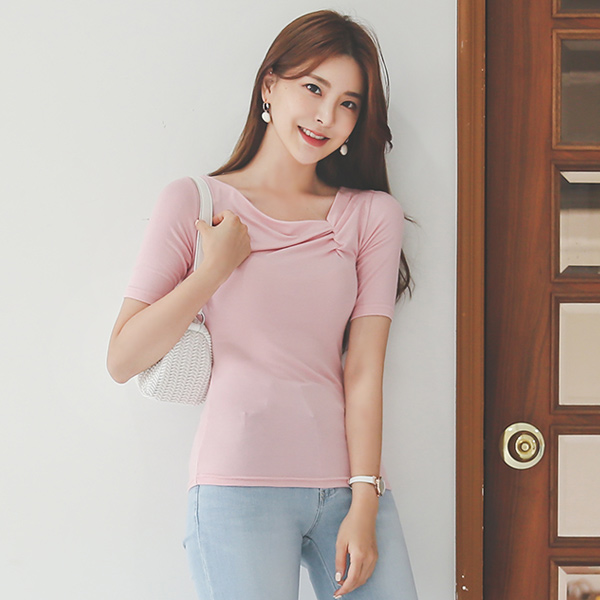 ソフト テンセル ピンチシャーリング アンバランスネック ティーシャツ