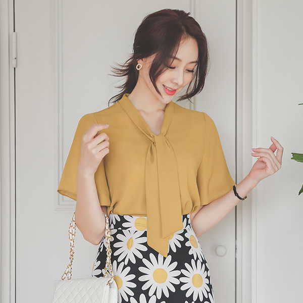 . ワイド袖 リボンタイ ブラウス