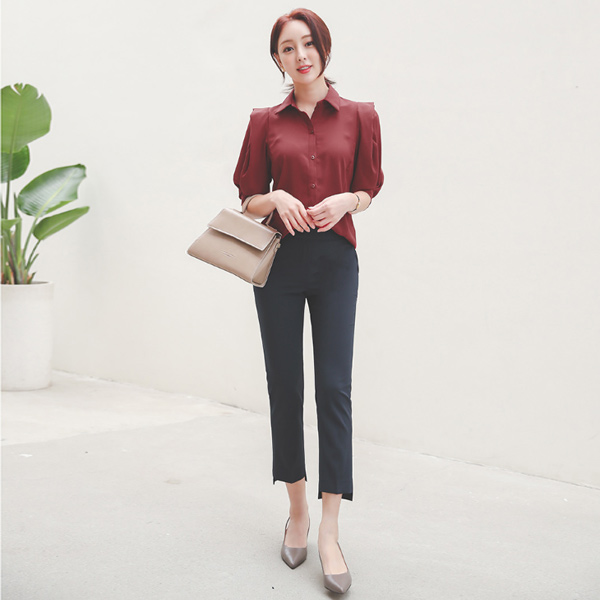 アンバランス カッティング スリム ブーツカット 弾力 9分 スレックス
