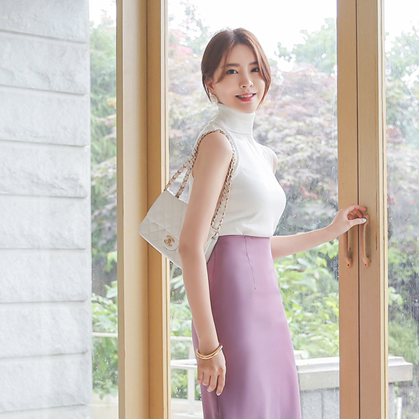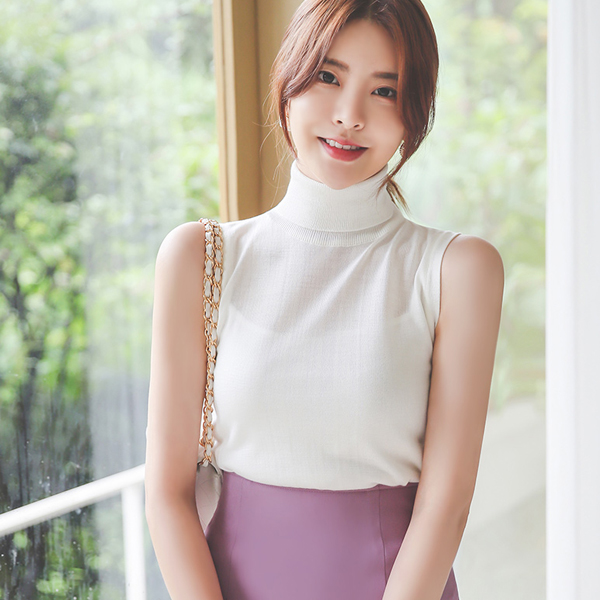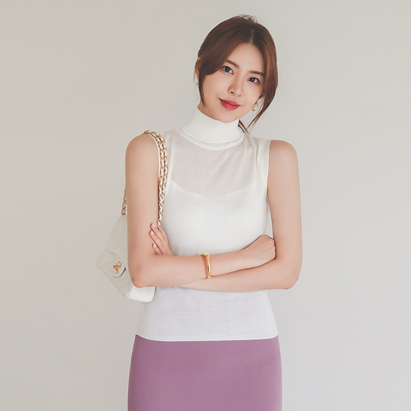 シースルー とっくりえり スリーブレス ニットティーシャツ