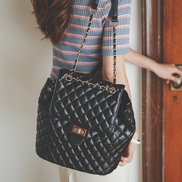 ゴールドチェーン キルティング ブラックシャネル バックパック