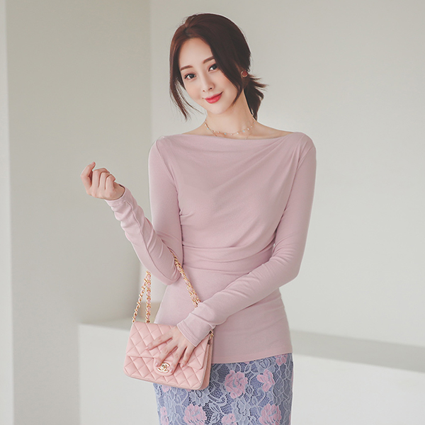 テンセル ソフト ドレーピング ボートネック ティーシャツ