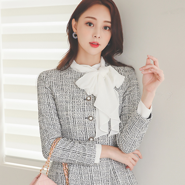 Coco ツイード 真珠ボタン ペプラム 弾力 ジャケット