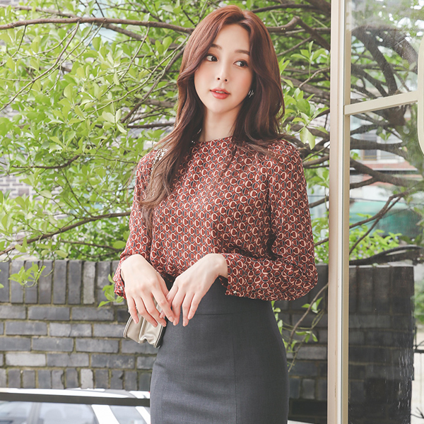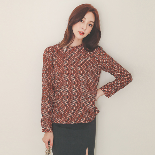 真珠 切開 Cリング パタン ラウンド ブラウス