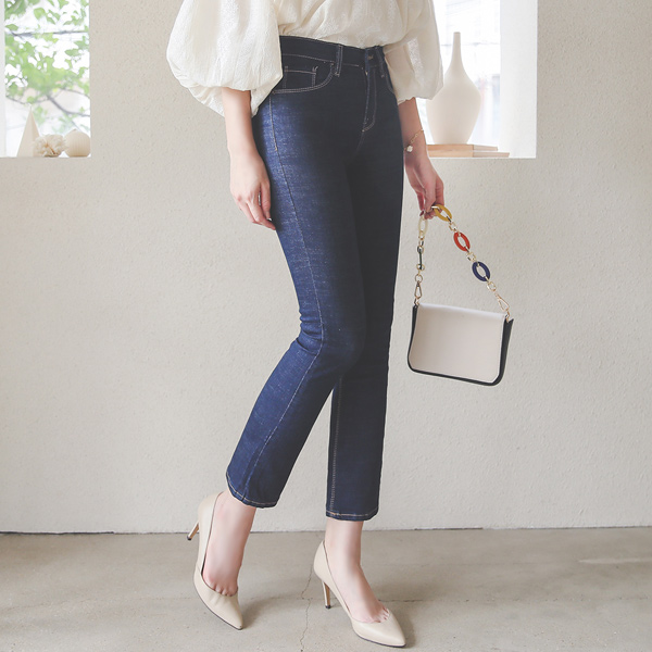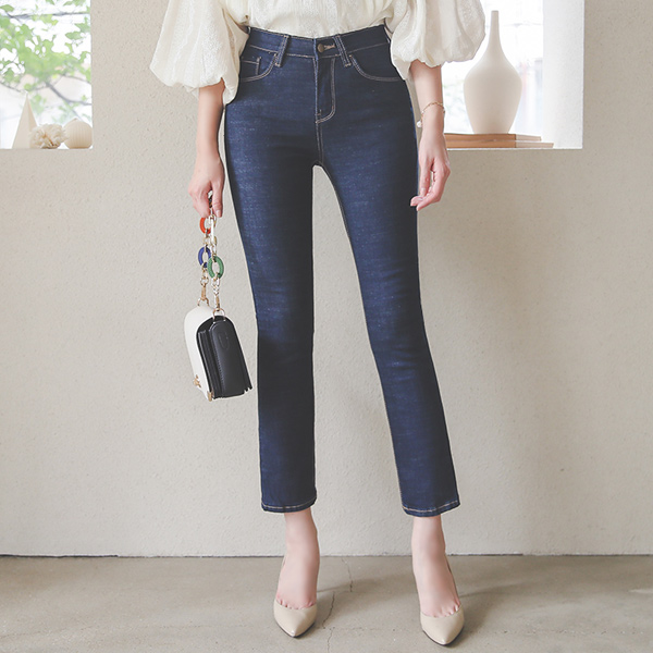 Stretchy-Waist ステッチ 生地 デニム ズボン