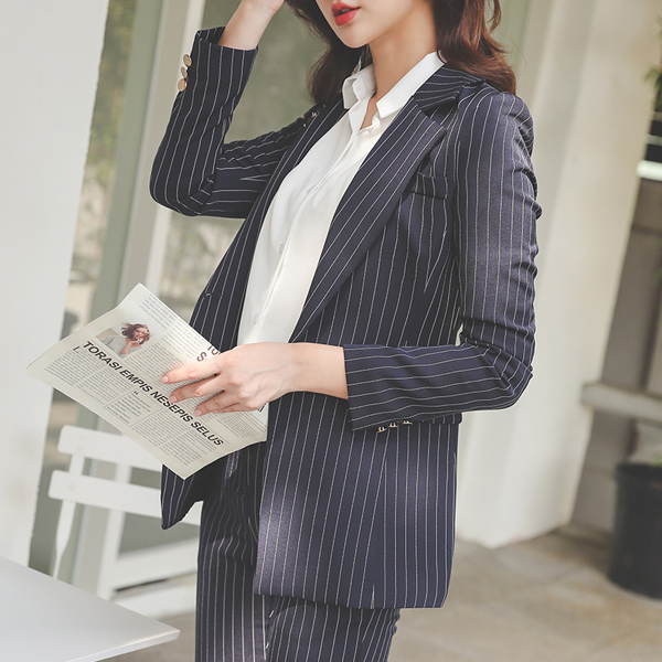 クラシック ピンストライプ スリム 弾力 ワンボタン ジャケット