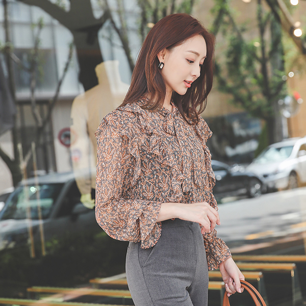 アイビー ラッフル リボンタイ シフォン ブラウス