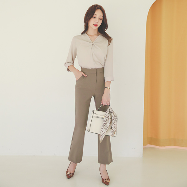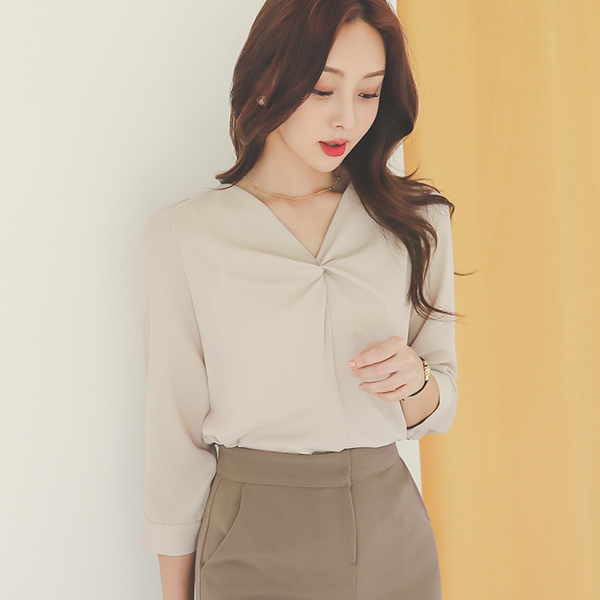 ツイスト ブイネック ソフト リンクル ブラウス