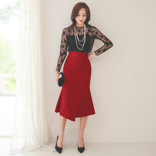 斜線 切開 アンバランス スリット マーメイド スカート