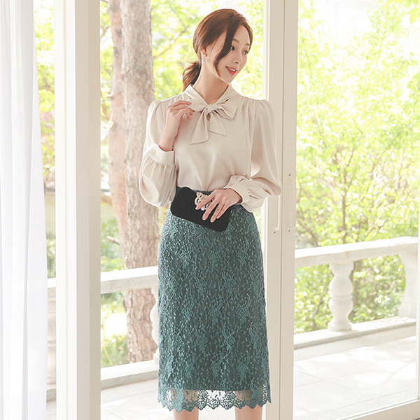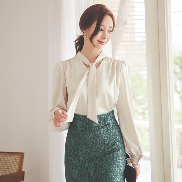 ツーウエー スカーフネック 繻子 ブラウス