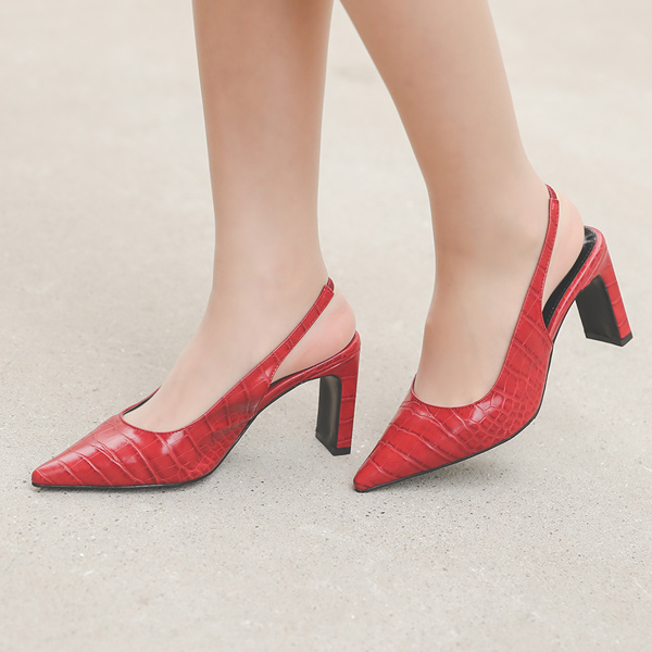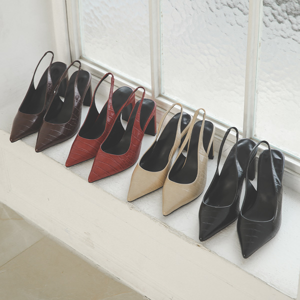 シャープ エンボスレザー 厚底 スリングバックヒール