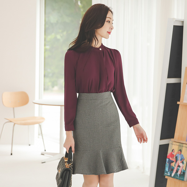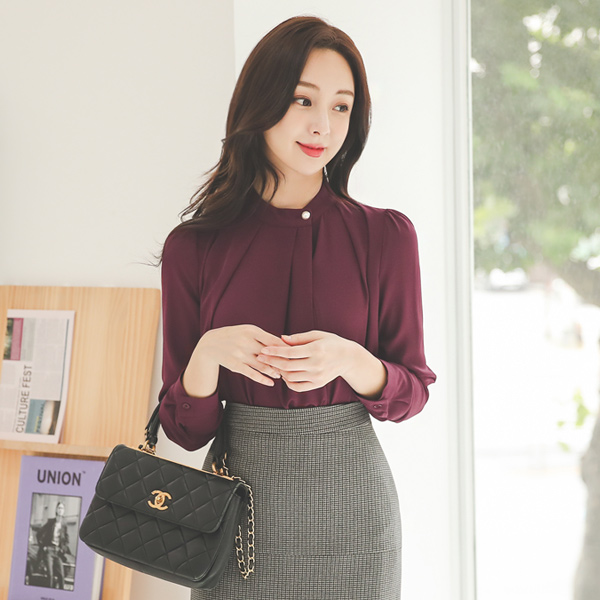 フェミニン サイド 真珠ボタン ブラウス(fall)