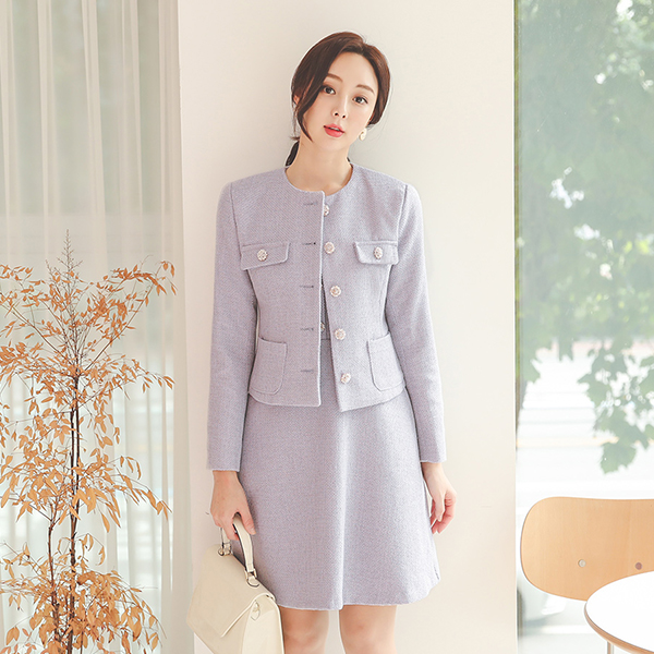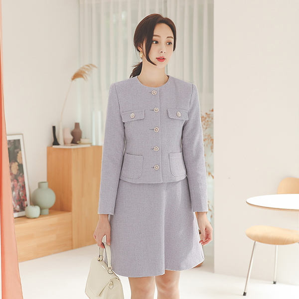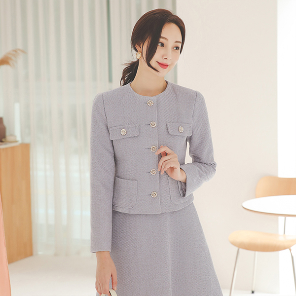 真珠フラワー ノーカラー ダブルポケット ツイード ジャケット