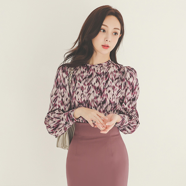 スマッジング Leopard パフ袖 ブラウス