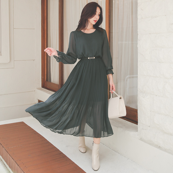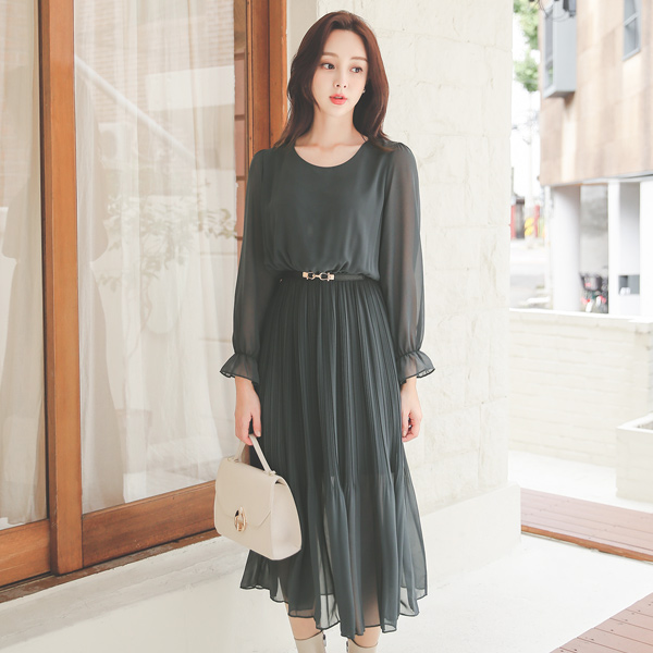 エレガンス シフォン ロング ワンピース(長袖)