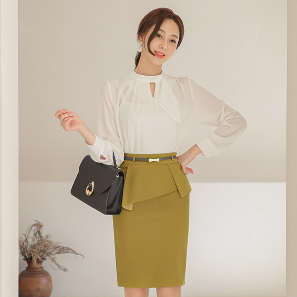 アンバランス ペプラム ゴールド ベルト スカート