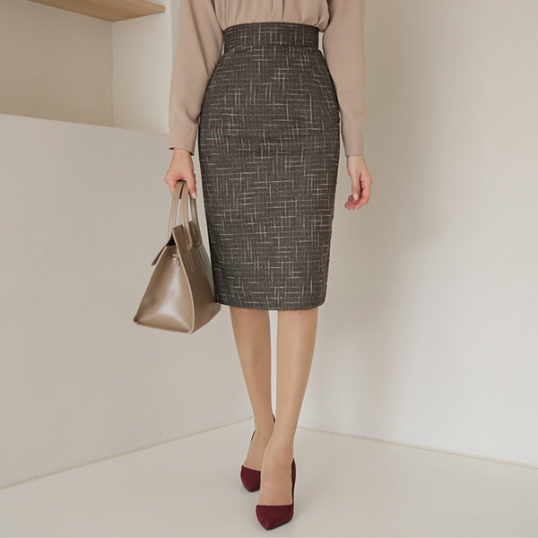 毛織 ツイード ハイウエスト スカート