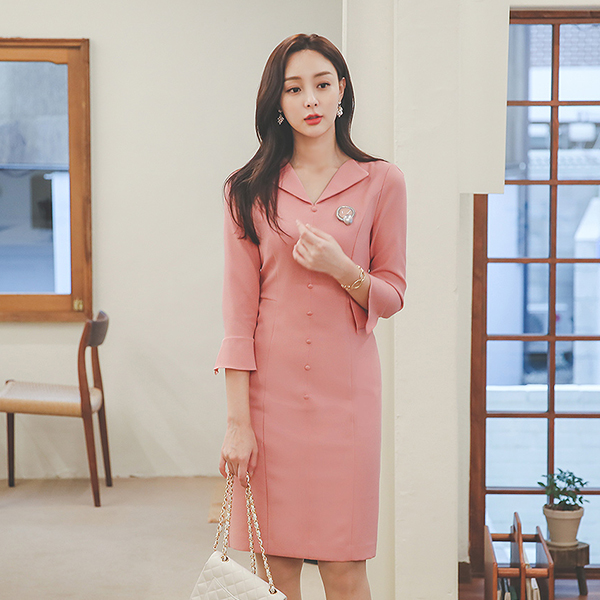 ウイングカラー 豆ボタン ラッフル カフス ワンピース