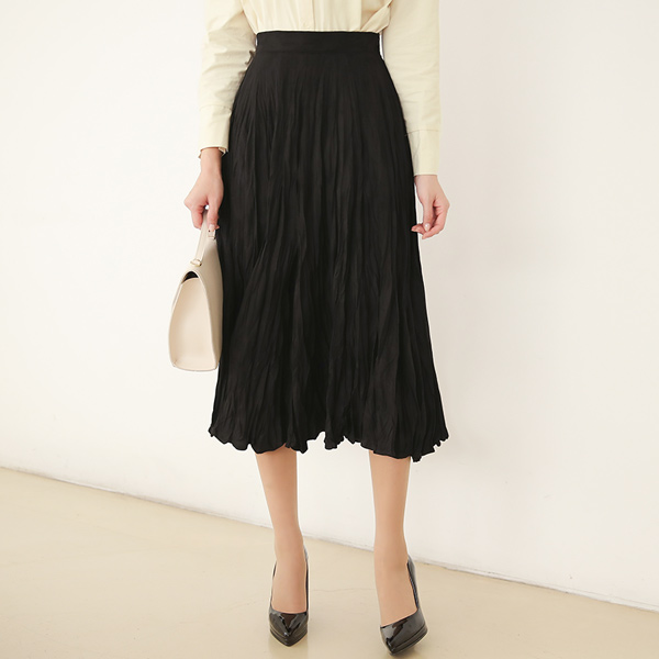 スエード リンクル プリーツ 後面バンド ロング スカート