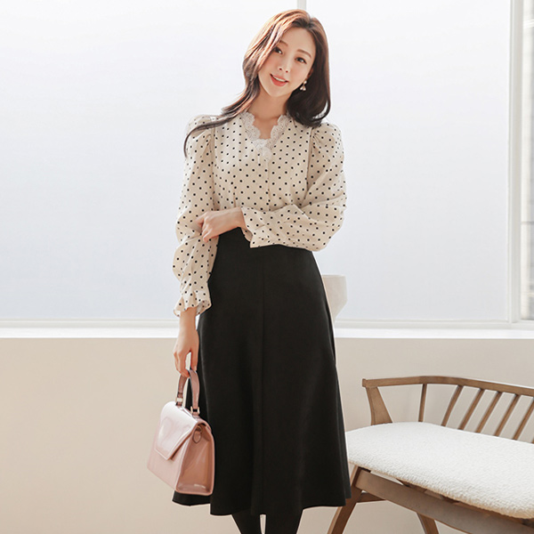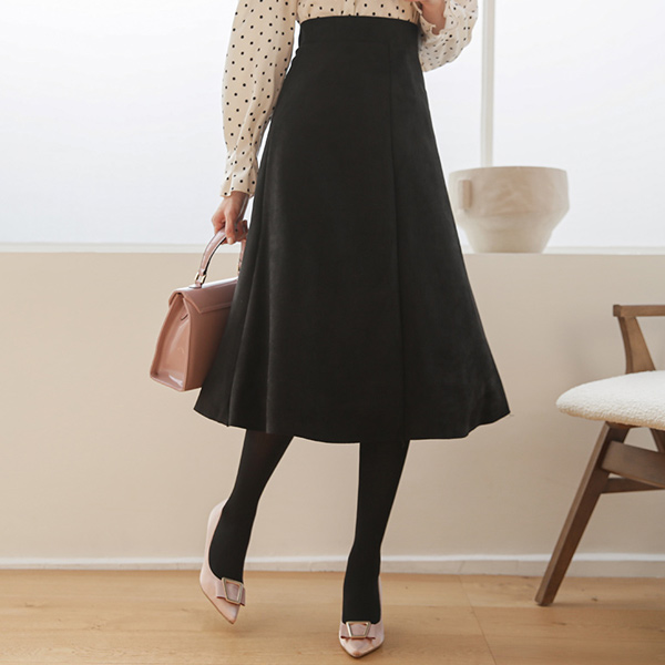 スエード 切開 弾力 後面バンド フレア スカート