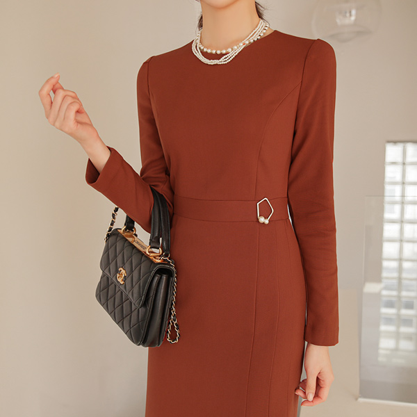 ゴールド真珠 ペンタゴン サイド プリーツ ワンピース