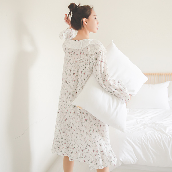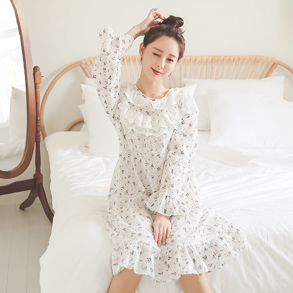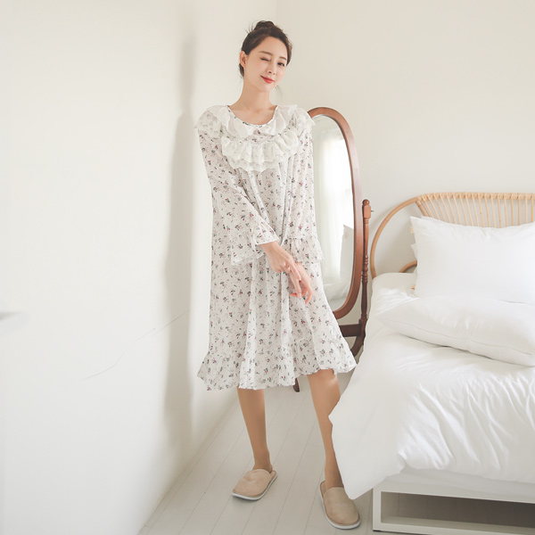 ラブリー 花柄 フリル ロング パジャマ ワンピース