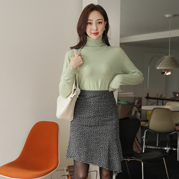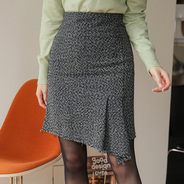 ミックス フリンジ ツイード アンバランス ラッフル スカート
