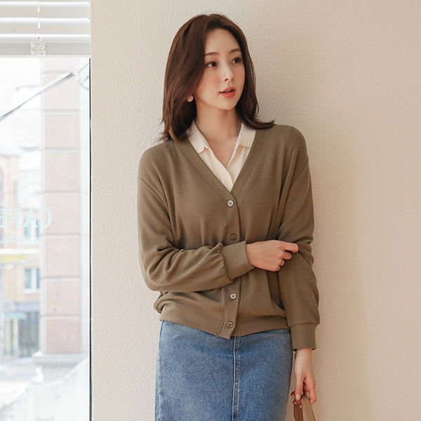 デーリー ベーシック ルーズフィット ブイネック カーディガン