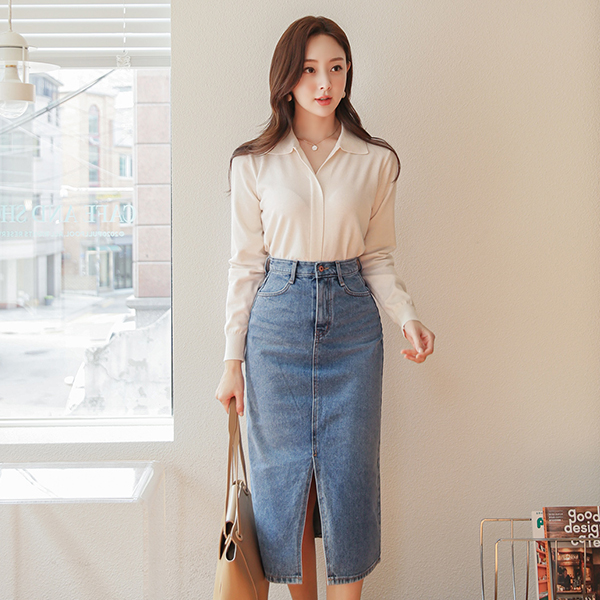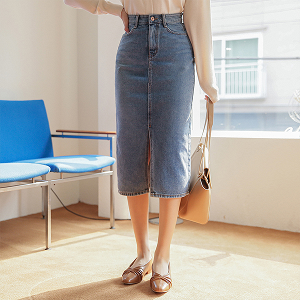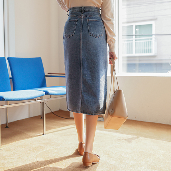 ウォッシング デニム ハイウエスト スリット ロングスカート