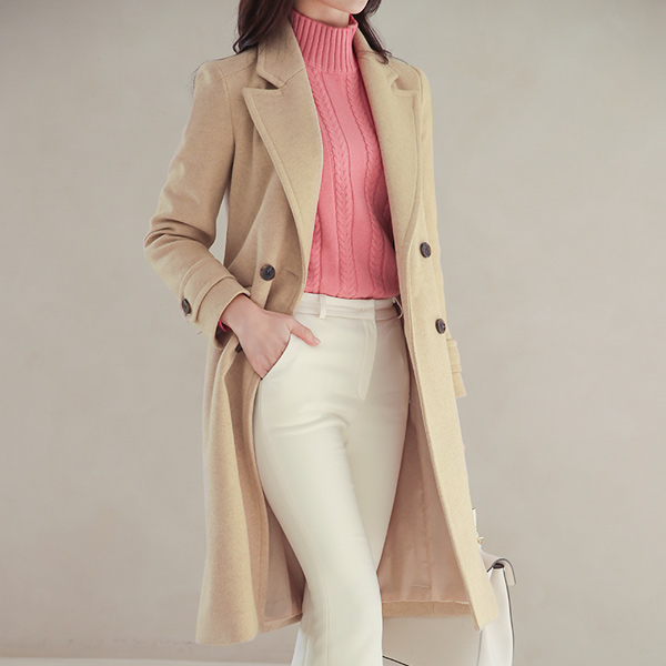 ワイドカラー びじょう ダブル スリムフィット ウールのコート Ⅱ