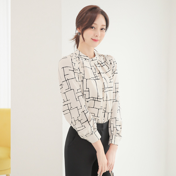 モザイク 配色 ピンタック ブラウス