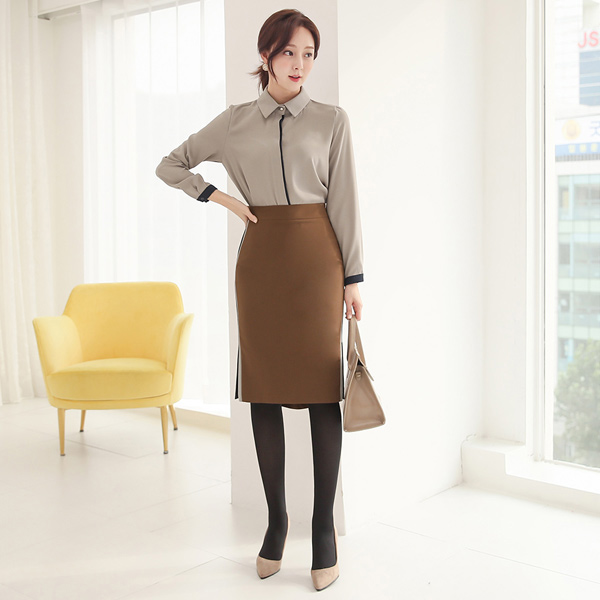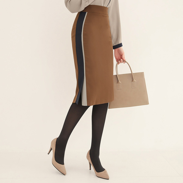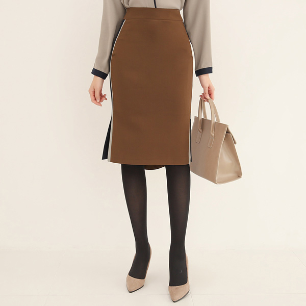 サイド 配色 ダブル スリット スカート