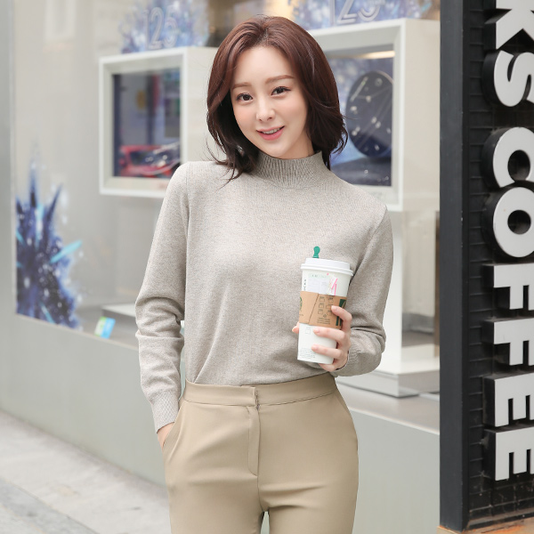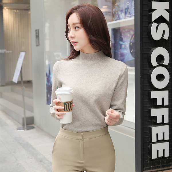 ビスコース シンプル 半タートルネック ニットティーシャツ