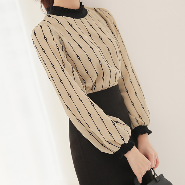 Silver ダイヤ ストライプ パフ ブラウス(長袖)