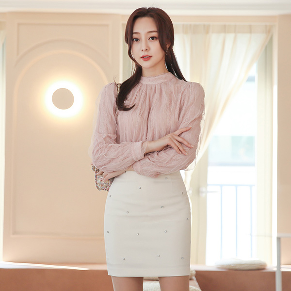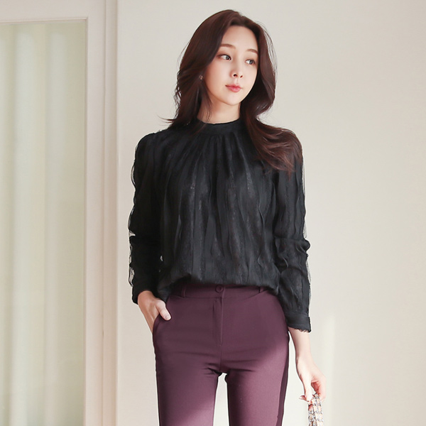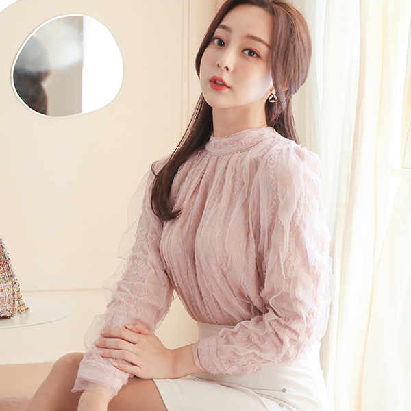 ロマンチック レイス ウエーブ ハーフネック ブラウス