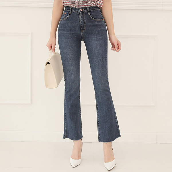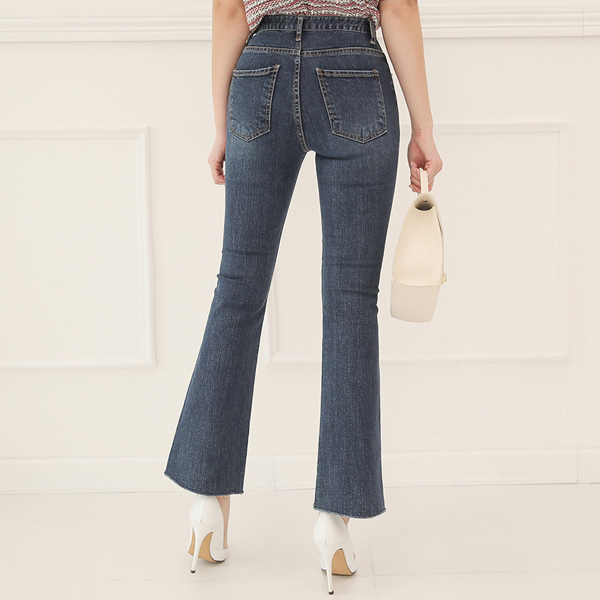 Indigo-Blue 簡易カッティング ブーツカット デニムパンツ