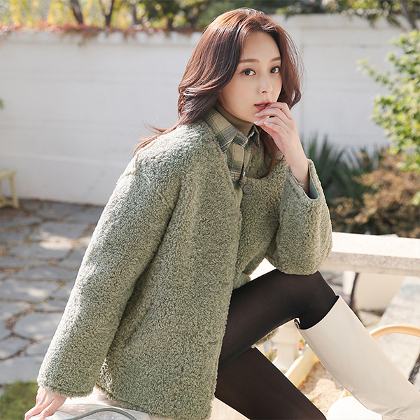 起毛 ウール ノーカラー ジャケット&バケツバッグ SET